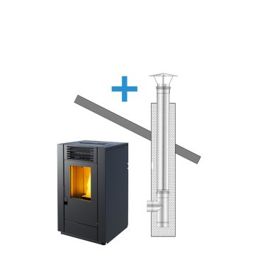 De afvoerbuis loopt vanaf de kachel naar het plafond, waarna deze met een dubbelwandige buis naar buiten gaat. |