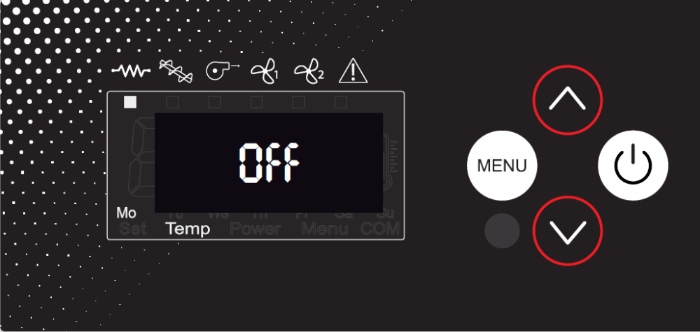 4-knops display: houd de pijl-omhoog knop ingedrukt.
